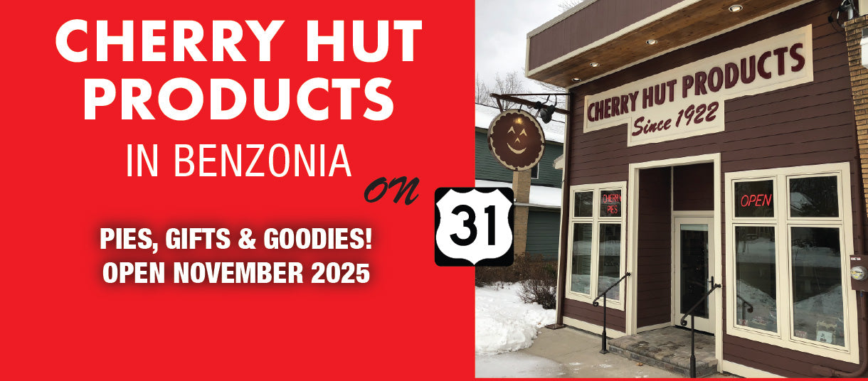 The Cherry Hut ships out its homemade jams and local grown dried cherries to fans all over the United States. Our Cherry Goods are available at Cherry Hut Products in Benzonia (OPEN NOVEMBER 5, 2025) and online! The Cherry Hut Restaurant in Beulah (CLOSED UNTIL MAY 2026),
